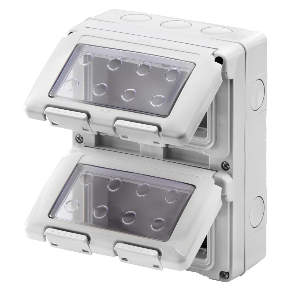 CONTENITORE PER APPARECCHI SYSTEM – VERTICALE STAGNO – 8 POSTI – MODULO 4X2 – GRIGIO RAL 7035 – IP55