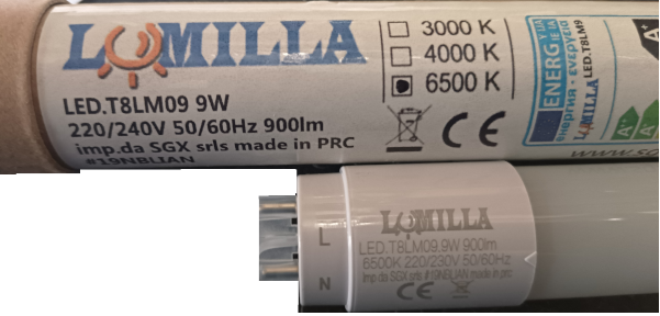 sgxled.t8.9f tubo led 600mm 9w 900lm 6500k